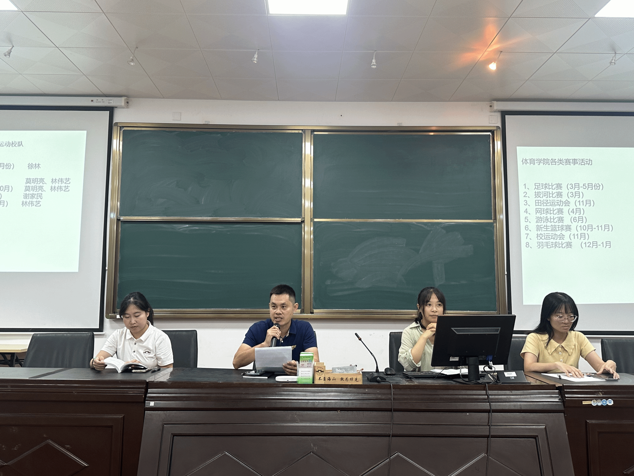 首先,由李光洪老师向同学们介绍学院各级领导以及分管辅导员的联系方式,并为同学们详细介绍了学校各项比赛,各种校队,鼓励全体新生积极参与专业学习和体育竞赛,做到多元发展。希望大家可以积极参与学校的比赛,进入学校的校队,努力学习新的运动项目,掌握新的运动技能。同时不松懈自己的锻炼,积极运动,努力成长为堪当民族复兴重任的时代新人。